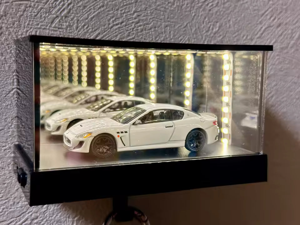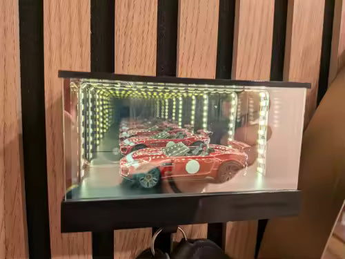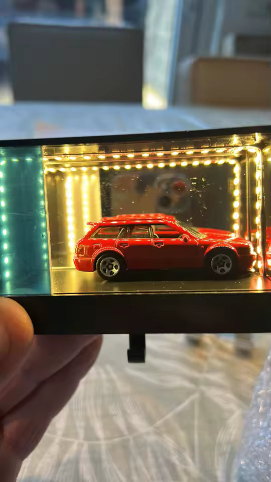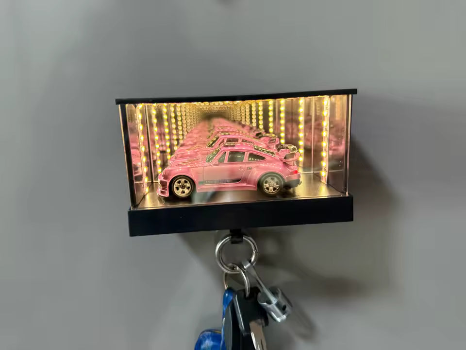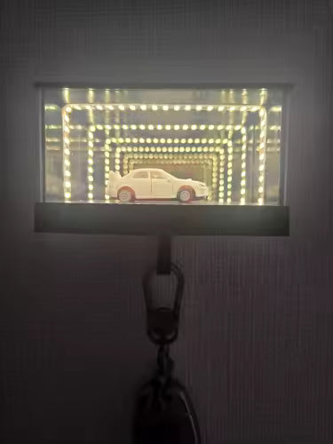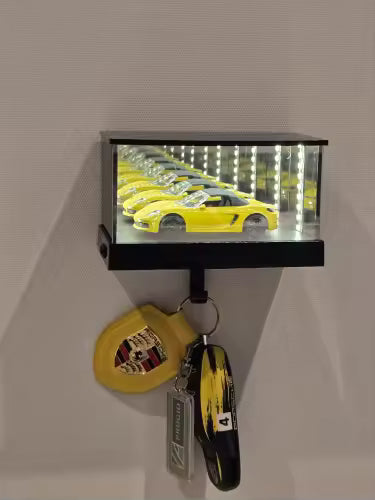 La luz LED está integrada en el diseño del mini garaje y proporciona una iluminación moderna que resalta el soporte y facilita encontrar tus llaves incluso en lugares con poca